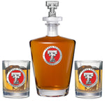 This 25 ounce glass decanter is embellished with a fine pewter casting and a 3-dimensional figure on top. Be sure to match it with some of our Double Old Fashioned glasses. A great addition to any home bar! Made in USA.