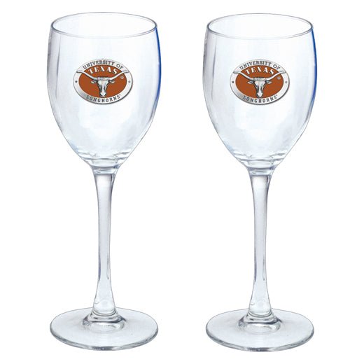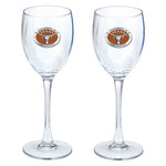 This is a set of two 12 ounce glass goblets with a fine pewter logo medallion bonded to the side.  It could be used to serve water, wine or other beverages. Made in USA.