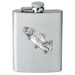 This 8 ounce stainless steel flask is embellished with a fine pewter casting. Assembled in USA.