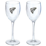 This is a set of two 12 ounce glass goblets with a fine pewter logo medallion bonded to the side. It could be used to serve water, wine or other beverages. Made in USA.