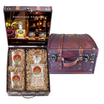 This 3-piece set has been upgraded with a bigger, beautifully crafted chest box — designed with added space to hold your favorite bottle alongside the set.