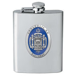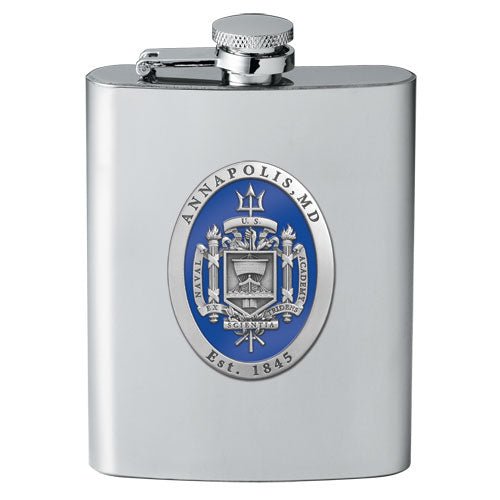 This 8 ounce stainless steel flask is embellished with a fine pewter casting. Assembled in USA.