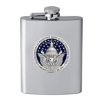 This 8 ounce stainless steel flask is embellished with a fine pewter casting. Assembled in USA.