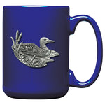 This coffee mug is decorated with a fine pewter casting. It is microwaveable and dishwasher safe with no heat cycle.. The glass coffee mug is 16 ounces, and the ceramic coffee mug is 15 ounces.