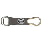 This bottle opener is solid stainless steel with a decorative fine pewter accent casting. The hole opposite the opener is for hanging on a peg. Heritage Pewter has been hand-crafting fine pewter gifts since 1988. We offer an array of pewter products, ranging from barware to wind chimes, golf clubs to coffee mugs. We can customize any of these products with our beautiful pewter designs like a college logo, a wildlife scene, a military motif, or your favorite sport. Please be sure to add this pewter product to your cart and then continue browsing our website - find a pewter gift for everyone on your list!
