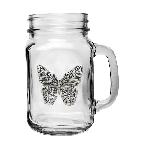 This 22 ounce glass mason jar mug features a fine pewter casting. The details in this 3-d sculpted design are incredible! Made in USA.