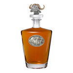 This 25 ounce glass decanter is embellished with a fine pewter casting and a 3-dimensional figure on top. Be sure to match it with some of our Double Old Fashioned glasses. A great addition to any home bar! Made in USA.