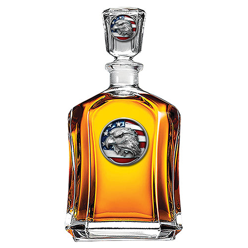 This 24 ounce glass decanter is embellished with a fine pewter casting. It is a great match with two Double Old Fashioned glasses. A great addition to any home bar! Made in USA.