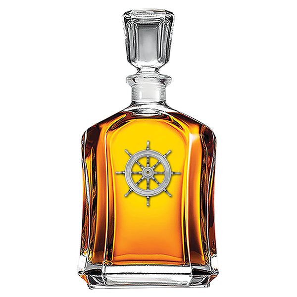 This 24 ounce glass decanter is embellished with a fine pewter casting. It is a great match with two Double Old Fashioned glasses. A great addition to any home bar! Made in USA.