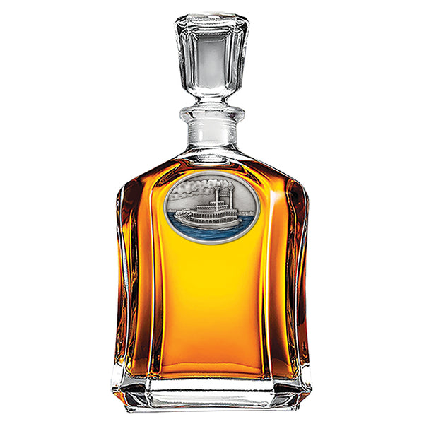 This 24 ounce glass decanter is embellished with a fine pewter casting. It is a great match with two Double Old Fashioned glasses. A great addition to any home bar! Made in USA.