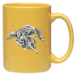 This coffee mug is decorated with a fine pewter casting. It is microwaveable and dishwasher safe with no heat cycle.. The glass coffee mug is 16 ounces, and the ceramic...