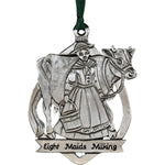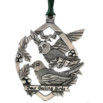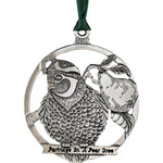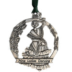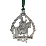 This fine pewter ornament is detailed on both sides. It comes with satin ribbon and in a window package. Use it on your tree, car mirror, or other applications! Made in USA.