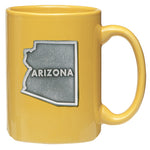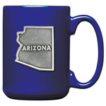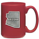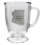 This coffee mug is decorated with a fine pewter casting. It is microwaveable and dishwasher safe with no heat cycle.. The glass coffee mug is 16 ounces, and the ceramic coffee mug is 15 ounces.