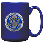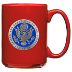 This coffee mug is decorated with a fine pewter casting. It is microwaveable and dishwasher safe with no heat cycle.. The glass coffee mug is 16 ounces, and the ceramic coffee mug is 15 ounces.