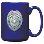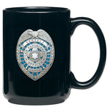 This coffee mug is decorated with a fine pewter casting. It is microwaveable and dishwasher safe with no heat cycle.. The glass coffee mug is 16 ounces, and the ceramic coffee mug is 15 ounces.
