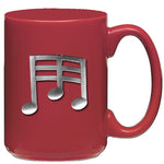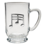 This coffee mug is decorated with a fine pewter casting. It is microwaveable and dishwasher safe with no heat cycle.. The glass coffee mug is 16 ounces, and the ceramic coffee mug is 15 ounces.