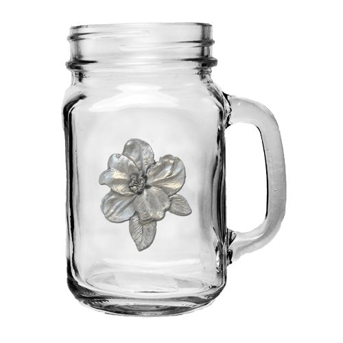 This 22 ounce glass mason jar mug features a fine pewter casting. The details in this 3-d sculpted design are incredible! Made in USA.