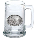 This 15 ounce glass stein features a fine pewter casting. The details in this 3-d sculpted design are incredible! Made in USA.