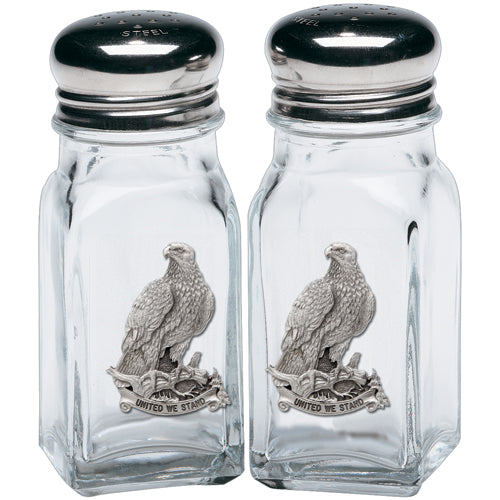 This is a set of salt & pepper shakers with a fine pewter logo medallion bonded to the side. Made in USA. Heritage Pewter has been hand-crafting fine pewter gifts...