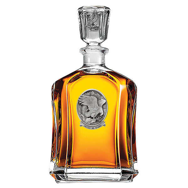 This 24 ounce glass decanter is embellished with a fine pewter casting. It is a great match with two Double Old Fashioned glasses. A great addition to any home bar! Made in USA.