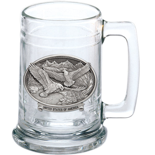 This 15 ounce glass stein features a fine pewter casting. The details in this 3-d sculpted design are incredible! Made in USA.