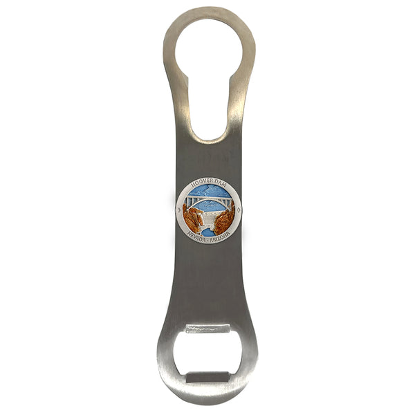 This bottle opener is solid stainless steel with a decorative fine pewter accent casting. The hole opposite the opener is for hanging on a peg. Heritage Pewter has been hand-crafting fine pewter gifts since 1988. We offer an array of pewter products, ranging from barware to wind chimes, golf clubs to coffee mugs. We can customize any of these products with our beautiful pewter designs like a college logo, a wildlife scene, a military motif, or your favorite sport. Please be sure to add this pewter product to your cart and then continue browsing our website - find a pewter gift for everyone on your list!