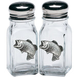 This is a set of salt & pepper shakers with a fine pewter logo medallion bonded to the side. Made in USA.
