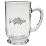 This coffee mug is decorated with a fine pewter casting. It is microwaveable and dishwasher safe with no heat cycle.. The glass coffee mug is 16 ounces, and the ceramic coffee mug is 15 ounces.