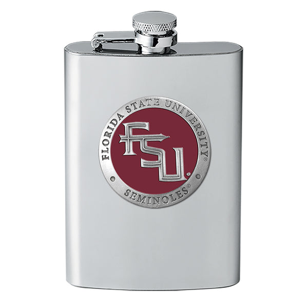 This 8 ounce stainless steel flask is embellished with a fine pewter casting. Assembled in USA.