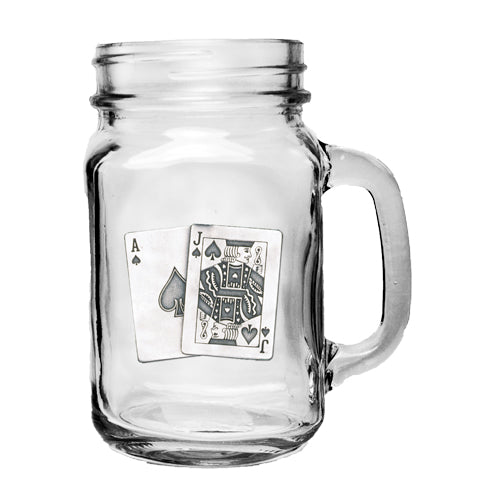 This 22 ounce glass mason jar mug features a fine pewter casting. The details in this 3-d sculpted design are incredible! Made in USA.