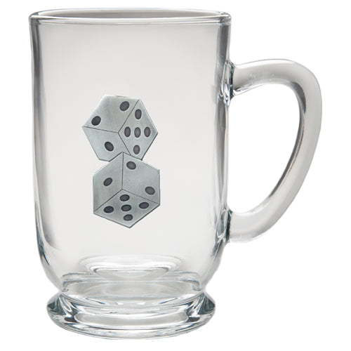 This coffee mug is decorated with a fine pewter casting. It is microwaveable and dishwasher safe with no heat cycle.. The glass coffee mug is 16 ounces, and the ceramic coffee mug is 15 ounces.