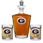 This 25 ounce glass decanter is embellished with a fine pewter casting and a 3-dimensional figure on top. Be sure to match it with some of our Double Old Fashioned glasses. A great addition to any home bar! Made in USA.