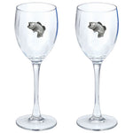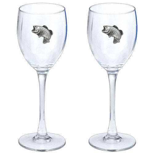 This is a set of two 12 ounce glass goblets with a fine pewter logo medallion bonded to the side. It could be used to serve water, wine or other beverages. Made in USA.