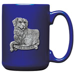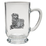 This coffee mug is decorated with a fine pewter casting. It is microwaveable and dishwasher safe with no heat cycle.. The glass coffee mug is 16 ounces, and the ceramic coffee mug is 15 ounces.