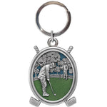 This key chain is cast in solid fine pewter and is detailed on both sides. Upgraded with a flat polished split ring. Made in USA.