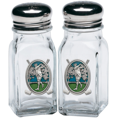 This is a set of salt & pepper shakers with a fine pewter logo medallion bonded to the side. Made in USA. Heritage Pewter has been hand-crafting fine pewter gifts...