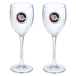 This is a set of two 12 ounce glass goblets with a fine pewter logo medallion bonded to the side.  It could be used to serve water, wine or other beverages. Made in USA.