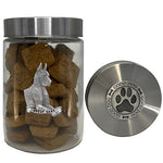 π—£π—˜π—₯π—™π—˜π—–π—§ π—šπ—œπ—™π—§ 𝗙𝗒π—₯ π——π—’π—š 𝗒π—ͺπ—‘π—˜π—₯𝗦 – This Dog Treat Jar is a perfect gift forΒ this kind of dog owner, with a high-quality jar and stunning design made of unique Fine Pewter alloy which contains silver. The addition of this precious metal provides for a brighter, more luxurious finish. Each jar is 34 OZ, coupled with an airtight sealable lid. Great for all the dog lovers in your life!