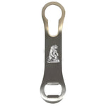 This bottle opener is solid stainless steel with a decorative fine pewter accent casting. The hole opposite the opener is for hanging on a peg. Heritage Pewter has been hand-crafting fine pewter gifts since 1988. We offer an array of pewter products, ranging from barware to wind chimes, golf clubs to coffee mugs. We can customize any of these products with our beautiful pewter designs like a college logo, a wildlife scene, a military motif, or your favorite sport. Please be sure to add this pewter product to your cart and then continue browsing our website - find a pewter gift for everyone on your list!
