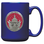 This coffee mug is decorated with a fine pewter casting. It is microwaveable and dishwasher safe with no heat cycle. This ceramic coffee mug is 15 ounces.