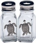 This is a set of salt & pepper shakers with a fine pewter logo medallion bonded to the side. Made in USA.
