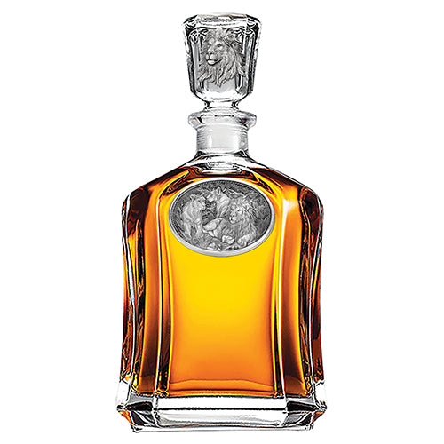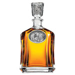 This 24 ounce glass decanter is embellished with a fine pewter casting. It is a great match with two Double Old Fashioned glasses. A great addition to any home bar! Made in USA.
