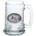 This 15 ounce glass stein features a fine pewter casting. The details in this 3-d sculpted design are incredible! Made in USA.