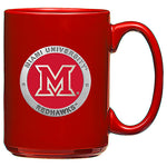 This coffee mug is decorated with a fine pewter casting. It is microwaveable and dishwasher safe with no heat cycle.. The glass coffee mug is 16 ounces, and the ceramic coffee mug is 15 ounces.