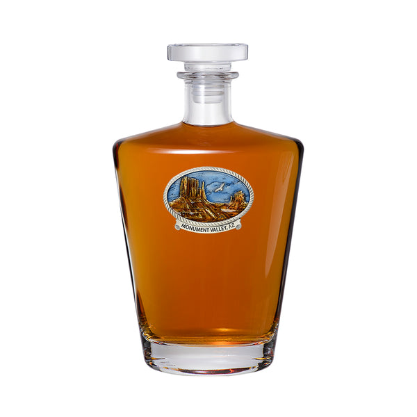 This 25 ounce glass decanter is embellished with a fine pewter casting. Be sure to match it with some of our Double Old Fashioned glasses. A great addition to any home bar!