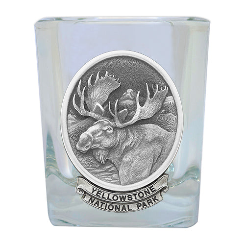 This 9 ounce prism rock glass is the ultimate vessel for your favorite beverage. It is exquisitely detailed with a fine pewter casting. Made in USA. A great addition to any home bar! Yellowstone National Park banner prominently displayed.