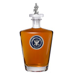 This 25 ounce glass decanter is embellished with a fine pewter casting and a 3-dimensional figure on top. Be sure to match it with some of our Double Old Fashioned glasses. A great addition to any home bar! Made in USA.