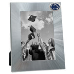 This photo frame is fabricated with brushed aluminum and accented with a fine pewter casting. Protective glass and easelback included. Assembled in USA.