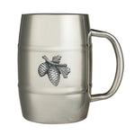 This 16 ounce stainless steel keg mug features a fine pewter casting. The details in this 3-d sculpted design are incredible! Made in USA.