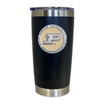 This 20 oz double wall stainless steel (no handle) thermal drink mug is insulated and it is stainless inside and out. It is embellished with a fine pewter decorative casting. The lid has a non-spill feature. The absence of a handle makes it perfect for you car's drink holder.